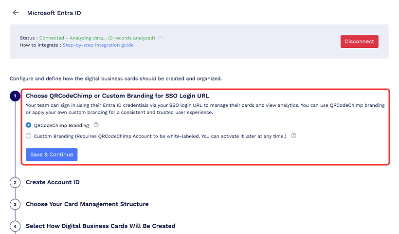Aloita yhdistämällä Entra ID -tilisi palveluun QRCodeChimp.