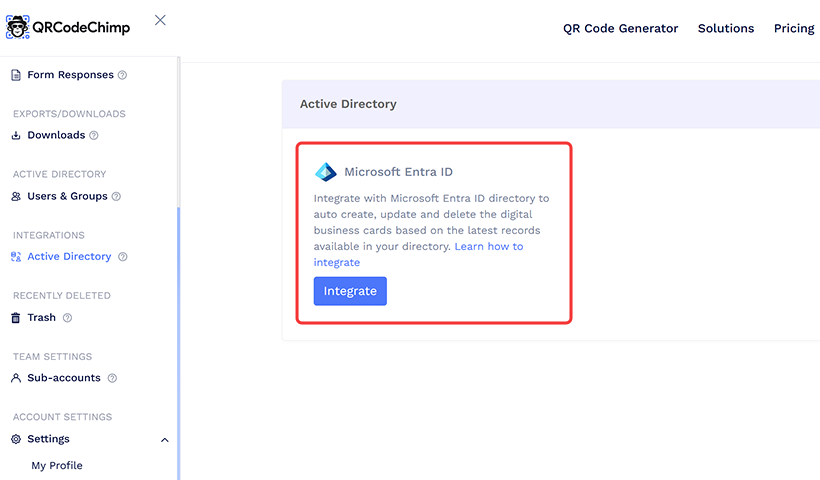 Integroi Microsoft Entra ID:n QRCodeChimp